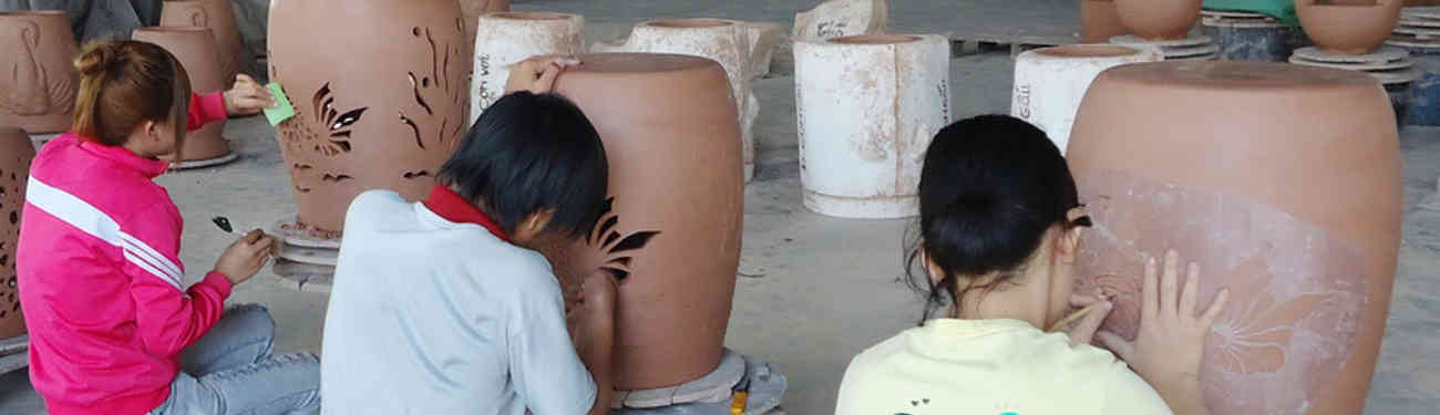 One of the things that makes our line of garden pottery special is that each piece is hand-made. Each piece starts with a talented craftsman taking clay and pushing it into a mold by hand. After an initial drying, they remove it with their hands and tirelessly work to smooth each seam and each design element out to give it the sleek shape that you see in each finished product. It is dried once again and liquid glazes are applied to the pots by hand. The pots are then moved to the kiln where it is set up to fire.